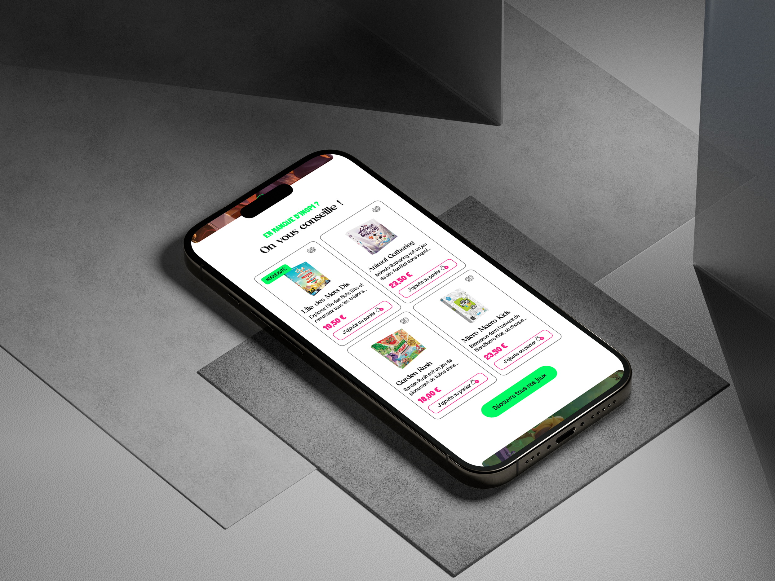Couleurs franches, typographies expressives et compositions dynamiques traduisent l’énergie, la convivialité et le plaisir propres à l’univers du jeu de société.